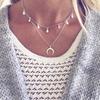 Vintage Multilayer Crystal Pendant Necklace Women Gold Color Beads Moon Star Horn Crescent Choker Necklaces Jewelry New