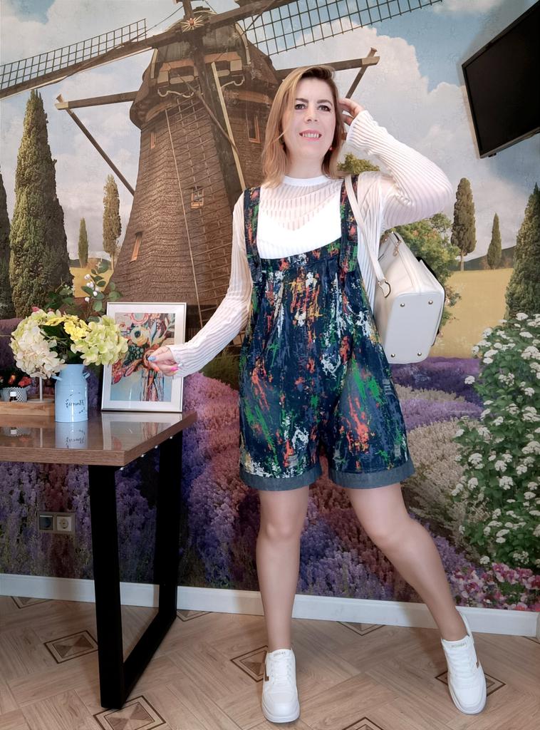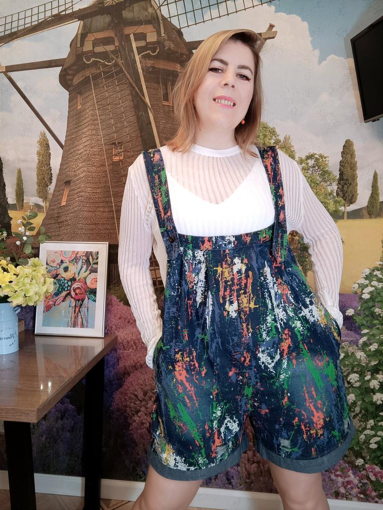 Korean Style Summer Women Denim Overalls Blue Print Stylish Casual Loose Playsuits Vintage Baggy Ripped Holes Wide Leg Short Rompers