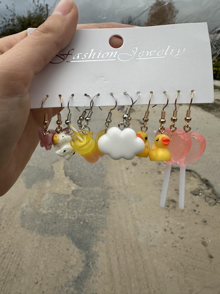 Colorful Butterfly Heart Drop Earring Sets Cute Resin Cartoon for Women Resin Flower Silver Accessories Jewelry