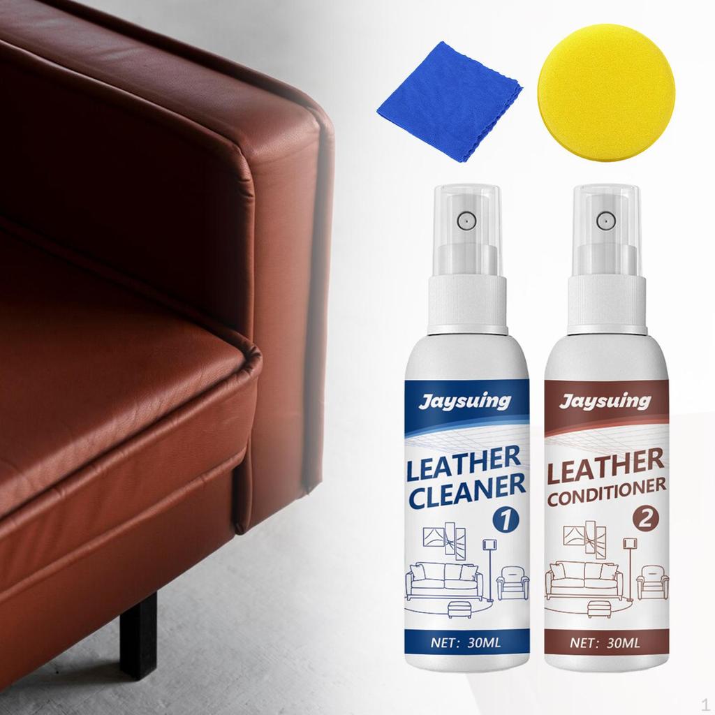 Leather Cleaner & Conditioner Set with Towel Sponge Care for Apparel