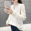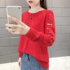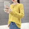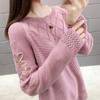 New Women's Pullover Fashion Hollow Solid Color Long-Sleeved Round Neck Sweater Cardigan Short Stitching