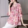 Elegant Fashion Casual Vintage Floral Printed Button Shirt Summer Autumn New V-Neck Half Sleeve Loose Tops Women's Clothing