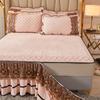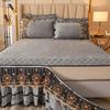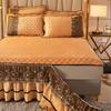Luxury Euro Crystal Velvet Gold Lace Ruffles Quilted Zipper Removable Bed Skirt Mattress Cover Bedspread Pillowcases Bedding Set