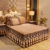 Luxury Crystal Velvet Thicken Bedding Bedspread Quilted Lace Fitted Bed Sheet 3 Side Coverage Ruffle Bed Skirt Pillowcases