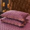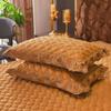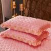 2PC Plaid Crystal Velvet Pillowcase with Zipper Ruffle Deco Soft and Warm Solid Color Rectangle Pillow Cover