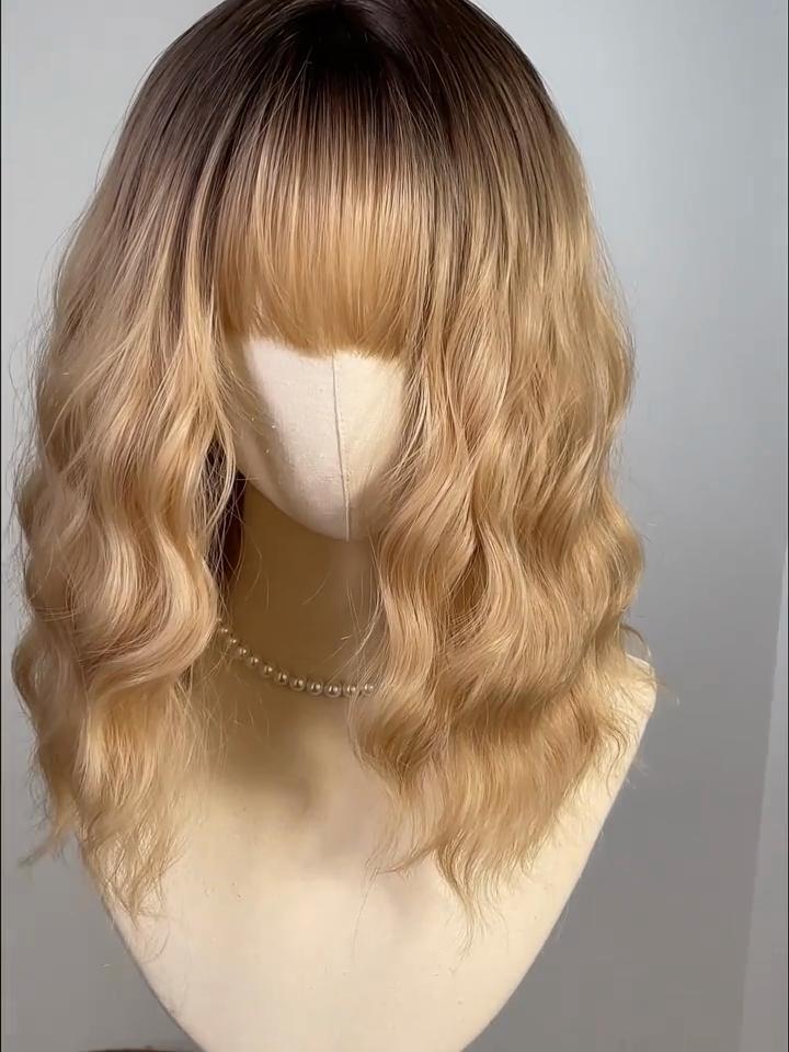 Short Pink Wigs for Women Short Wavy Light Pink Wigs with Bangs