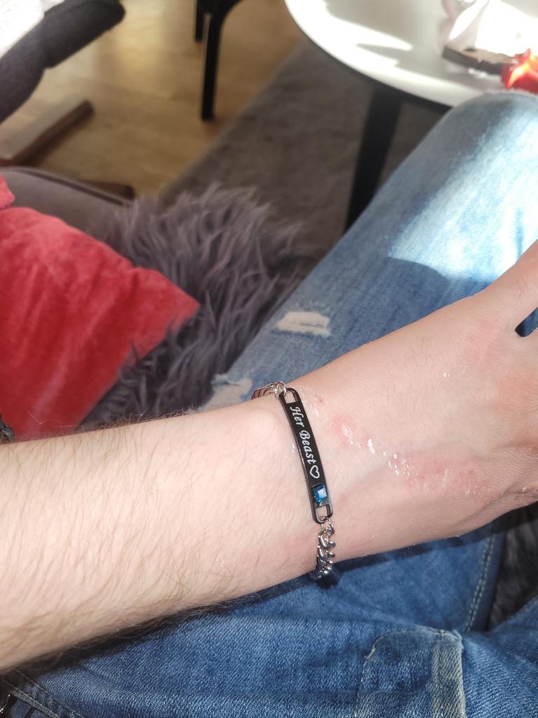 I received the parcel quickly. The bracelet is 22 cm long, there is an extension cord, made of stainless steel. Everything corresponds to the seller's description. My expectations have come true and it's nice.