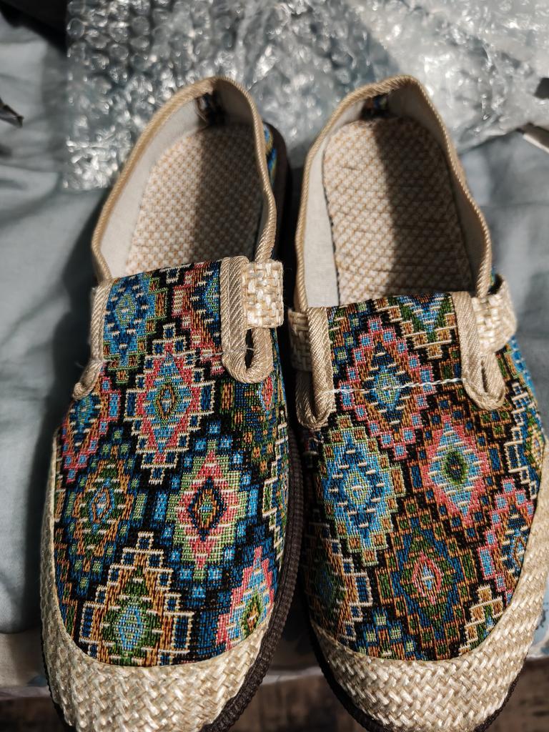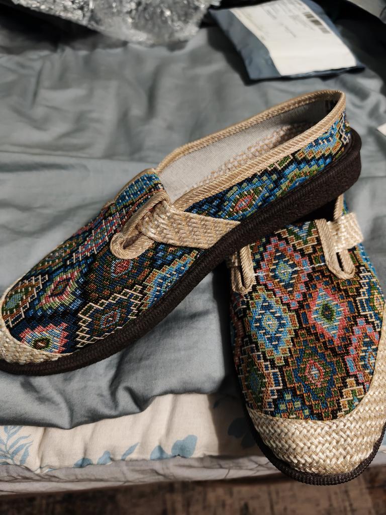 Women's Geometric Closed Toe Mules, Round Toe Non-slip Linen Cloges, Casual Slides Shoes