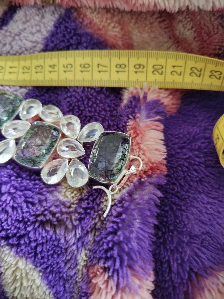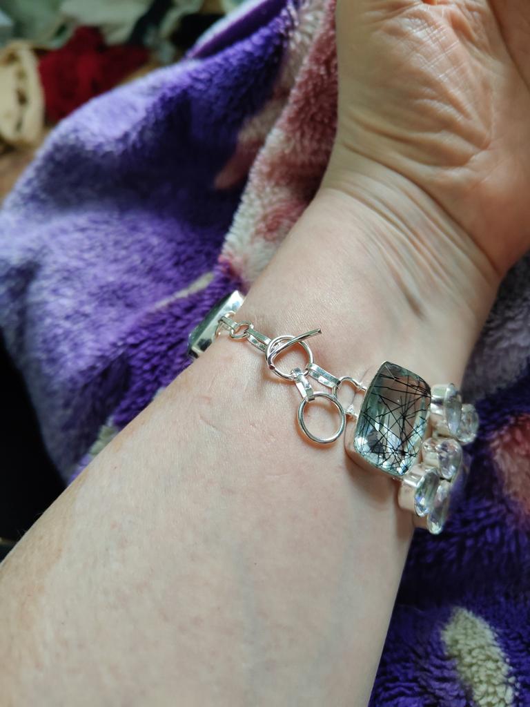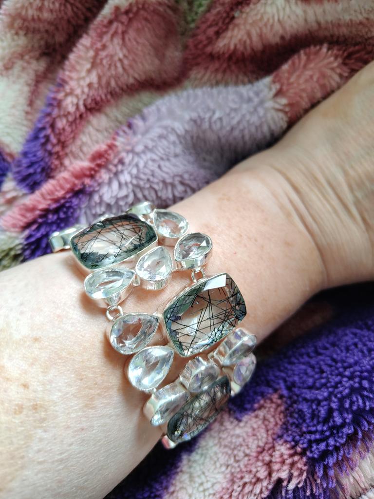 Natural Black Rutile, Topaz Handmade 925 Sterling Silver Bracelet 7-8" S4S68
