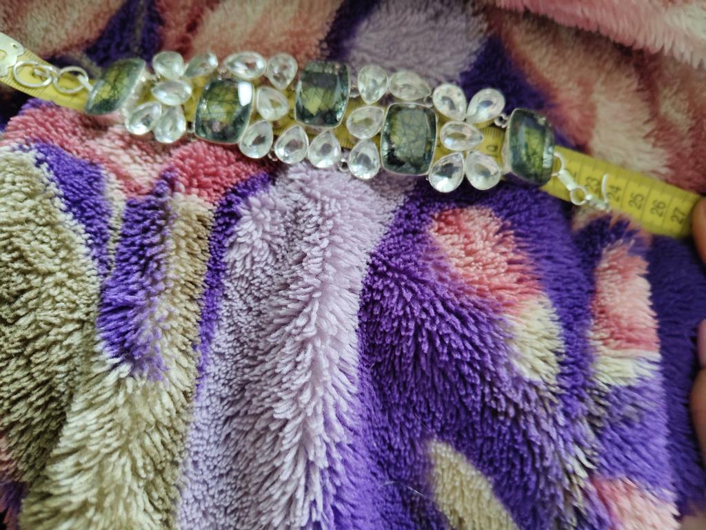Beautiful. Heavy - the stones are real. The clasp seems strong enough for such weight. But longer than the stated 8 inches, even considering the additional attachment ring. Despite this, Like very much!