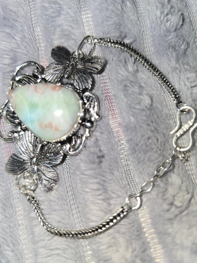 Natural Caribbean Larimar Gemstone 925 Sterling Silver Bracelet 7-8" u9L65