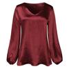 Simple blouse features v-neck design, which can present your slim and sexy clavicle. Casual blouse with smooth satin adds a sense of elegant and casual.