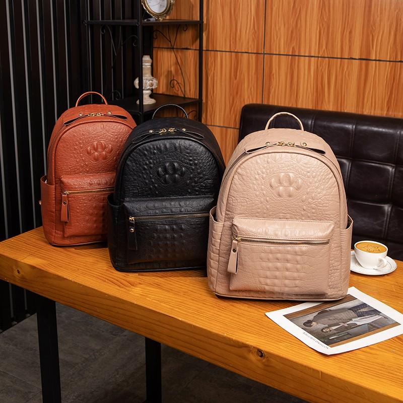 Women's Leather Bag Crocodile Shoulder Bag Travel Backpack