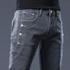 Men Cotton Casual Male Denim Pants Straight Stretch Slim Fit Grey Skinny Jeans Men's Trousers