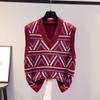 Women's Spring and Autumn Vest Knitting Women's Sweater Vest Vest Retro Vest V-neck Loose Outfit