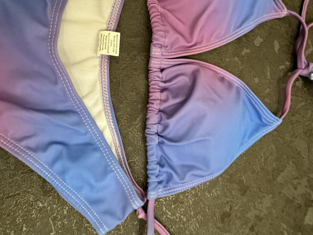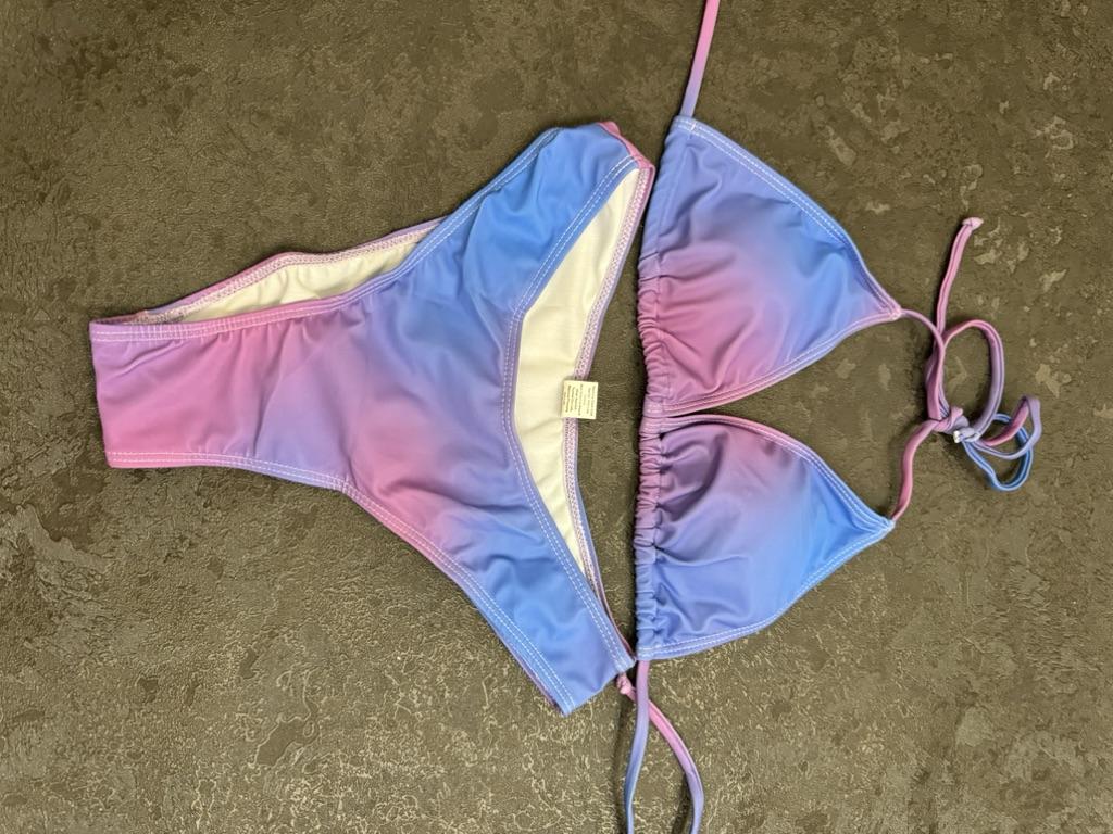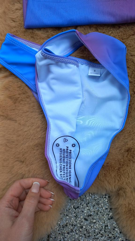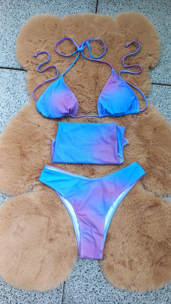 * sexy bikini with pareo - towel* ๐ฅ๐๐ถ๐ฒ๐ณ๐ฒ๐ฟ๐๐ฒ๐ถ๐ Good 3 weeks ๐ฅ๐๐ถ๐ฒ๐ณ๐ฒ๐ฟ๐๐บ๐ณ๐ฎ๐ป๐ด The delivery includes 1 bikini with a matching cloth for the hips in the corresponding color and size. It is available in 2 different colors (green and purple) in sizes S to L. I ordered it in size M in purple. I wear size 36 to 38. I weigh 62 kg over 172 cm. Cup size 75D. The bikini fits me like a glove. ๐ฅ๐ค๐๐ฎ๐น๐ถ๐รค๐ The bikini convinced me of its quality. ๐ It is opaque and has removable pads for a pleasantly light push-up effect. The briefs are cut slightly higher (high waist). The straps of the top can be individually adjusted at the neck and back. The included cloth can be tied to the side of the hips to form a bow, so you might feel a little less naked on the beach, for example when you go to a beach bar. I particularly like the color gradient from pink to lilac (reminds me of batik patterns). For material composition : 82% Polyester 18% Elastane ๐ฅ๐๐ฎ๐๐ถ๐ Mega beautiful bikini with removable pads that creates a beautiful cleavage. The included cloth conceals problem areas on the hips. You can order the bikini in its original size. It fits true to size. Many thanks for this great product to the manufacturer and to JOOM โค๏ธโค๏ธโค๏ธ ๐ฅฐ๐