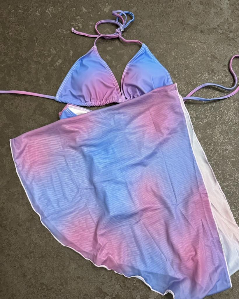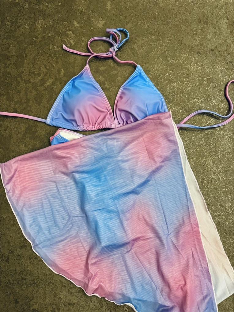 Three-piece bikini set with a wrap towel๐๐ฅผ ๐ โป๏ธโป๏ธDelivery time: 31 days to Germany. โป๏ธโป๏ธScope of delivery: The delivery includes a bikini set, consisting of top, panties and wrap in the appropriate size and color. It is available in sizes S, M, L in 2 colors: purple and green. I ordered the set in size S in purple and it fits me perfectly!!!๐๐๐๐ I normally wear a size 36-38. I weigh 55kg and am 167cm tall (90-65-90 cm). Cup size 75B. โป๏ธโป๏ธThe quality is very nice!๐ The panties are cut like a thong from the back. Cups have removable pads for a pleasant push-up effect ๐. 2 parts (top and panties) are opaque. Wrap cloth is transparent. It really looks very seductive! Material composition: 82% Polyester, 18% Spandex. โป๏ธโป๏ธConclusion: A mega beautiful sexy bikini set ๐ that perfectly accentuates the curves. ๐๐๐๐๐๐โค๏ธโผ๏ธIt is true to size and can be ordered in an original size.๐๐ฏ Thank you Joom and the seller!๐๐๐๐5 stars!