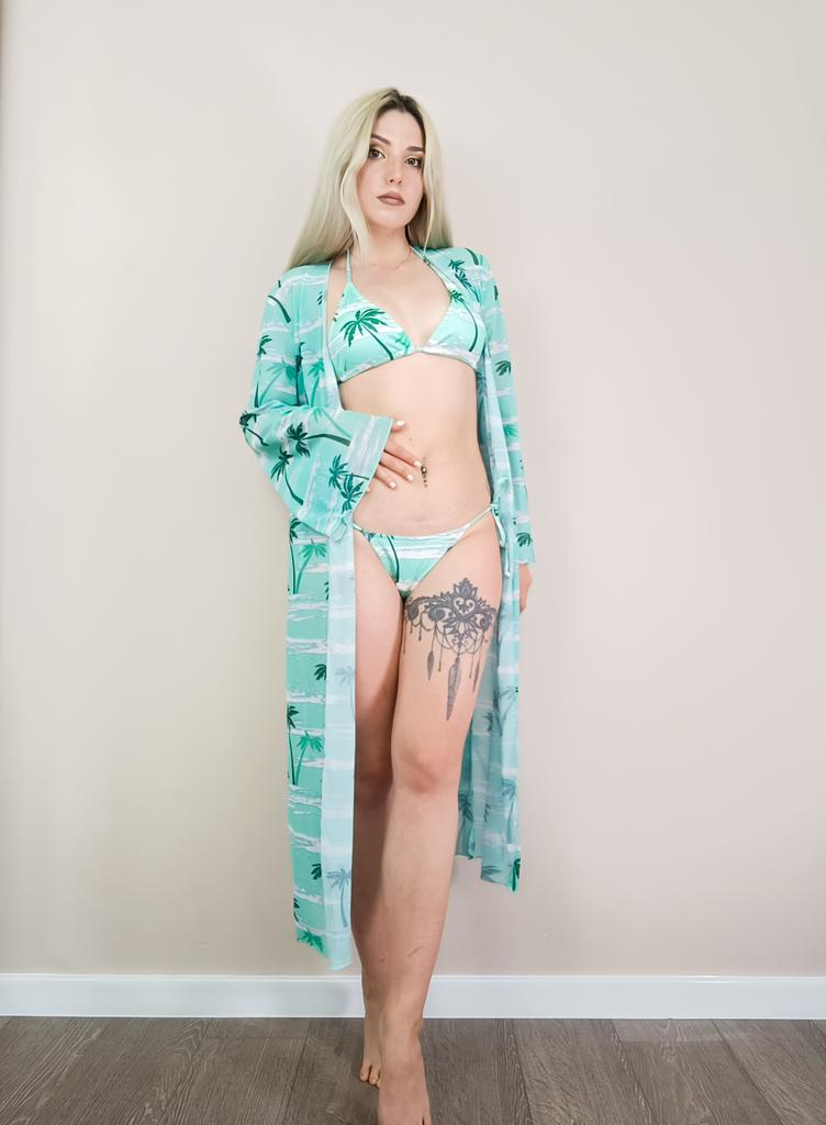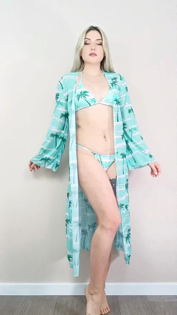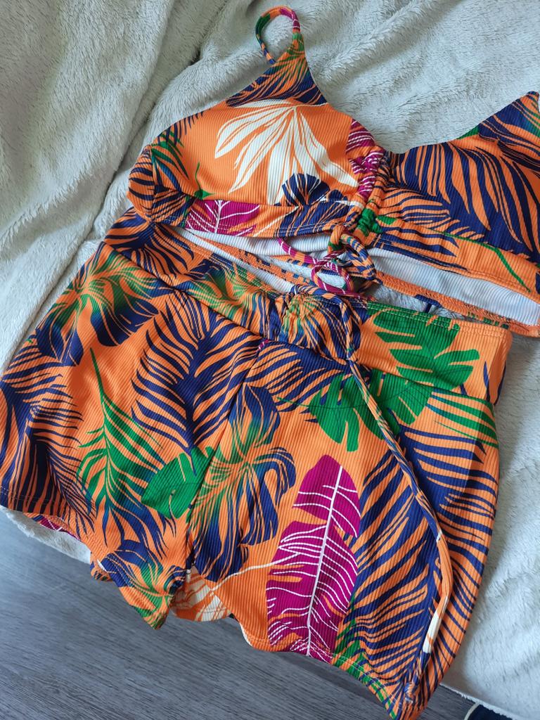 Three-piece bikini set with tunic in floral print ๐ โป๏ธโป๏ธDelivery time: 19 days to Germany. โป๏ธโป๏ธScope of delivery: The scope of delivery includes a bikini set consisting of a top, panties and tunic in the appropriate size and colour. It is available in sizes S, M, L, XL in 5 different colors. I ordered the set in size S in green and it fits me perfectly!!!๐๐๐๐ I normally wear a size 36-38. I weigh 55kg and am 167cm tall (90-65-90 cm). Cup size 75B. โป๏ธโป๏ธThe quality is nice!๐ The panties are cut like a thong from the back. Cups have removable pads for a pleasant push-up effect ๐. 2 parts (top and panties) are opaque. The tunic is transparent. It really looks very seductive! โป๏ธโป๏ธConclusion: A mega beautiful sexy bikini set ๐ that perfectly accentuates the curves. ๐๐๐๐๐๐โค๏ธโผ๏ธ Thank you Joom and the seller!๐๐๐๐5 stars!