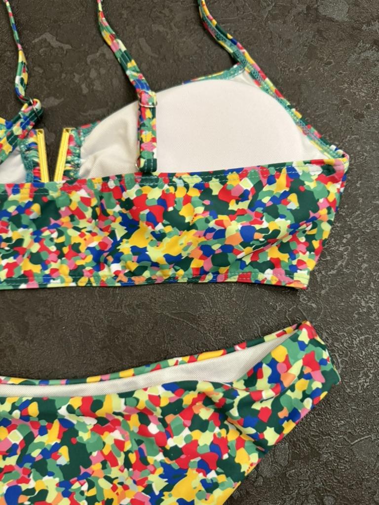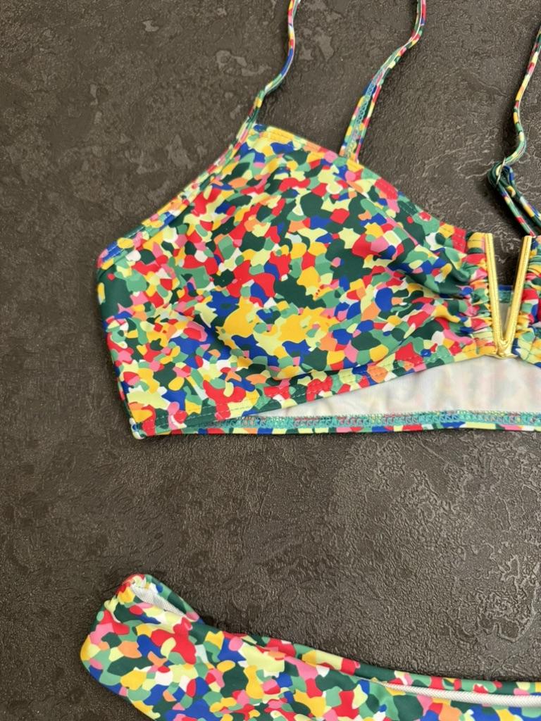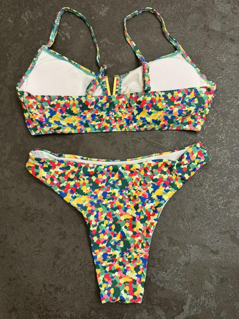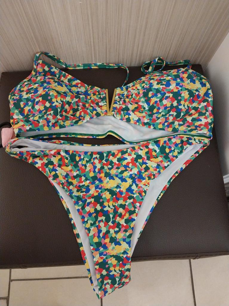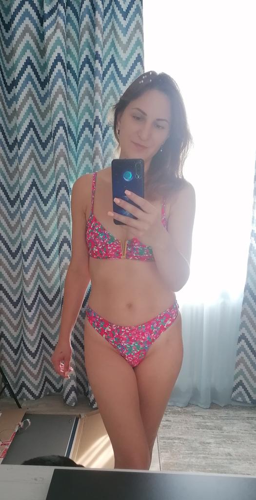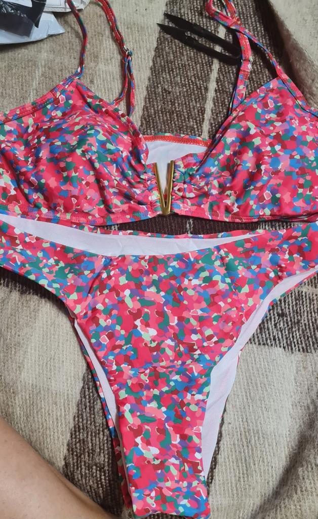 Beautiful bikini ๐in geometric print๐ผ๐๐! โป๏ธโป๏ธDelivery time: 34 days to Germany. โป๏ธโป๏ธScope of delivery: The delivery includes a bikini ๐in the appropriate size and color. It is available in sizes S to L in 3 different colors. I ordered the bikini in size M in green and unfortunately it is too big for me. When ordering, I based my order on the manufacturer's size chart and the data there does not correspond to reality. I should have ordered a size smaller. You have to order the product in its original size! It is true to size. โผ๏ธ I usually wear a size 36-38. I weigh 55kg and am 167cm tall (90-65-90 cm).. โป๏ธโป๏ธThe quality is very nice!๐ The๐ is perfect for the beach. I liked the design the most: this geometric print. It looks so beautiful!!!๐๐๐๐The bikini emphasizes the figure! โป๏ธMaterial composition: 82% polyamide, 18% elastane ๐, very stretchy ๐๐๐Cups have removable pads for a pleasant push-up effect!๐๐ It runs true to size. The product arrived with the label. In addition, the seller put a small gift ๐: a rubber band. Thank you very much for that!๐งก โป๏ธโป๏ธConclusion: A mega beautiful bikini that has to be ordered in its normal size. Thank you Joom and the seller!๐๐๐๐
