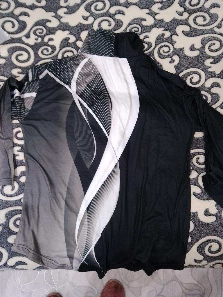 Long sleeve T-shirt. The size fits me, I wear 50-52. The fabric is thin, T-shirt. The sleeves are a little long.
