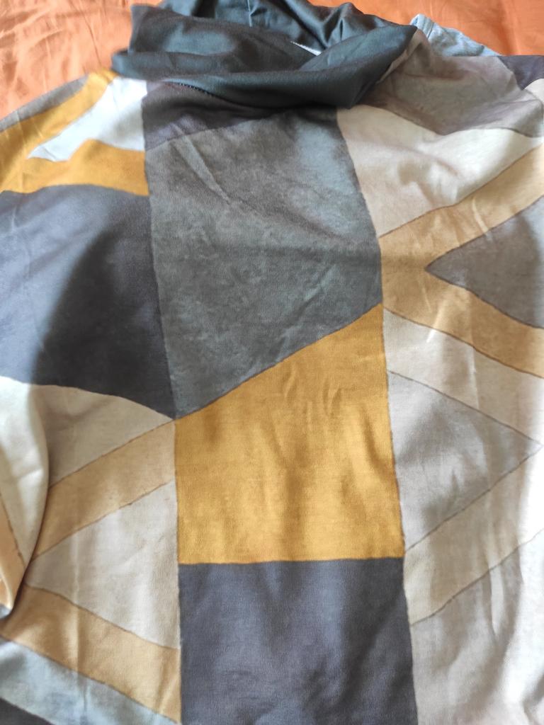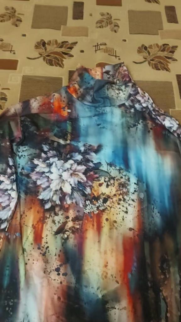 I made a decision for myself - I will not buy things anymore. It is difficult to choose the size. The sleeves are like Harlequin's, I will have to cut them off again. Maybe it's a fashion. But it's not for me. I only encounter this here, that I can't choose the right size.