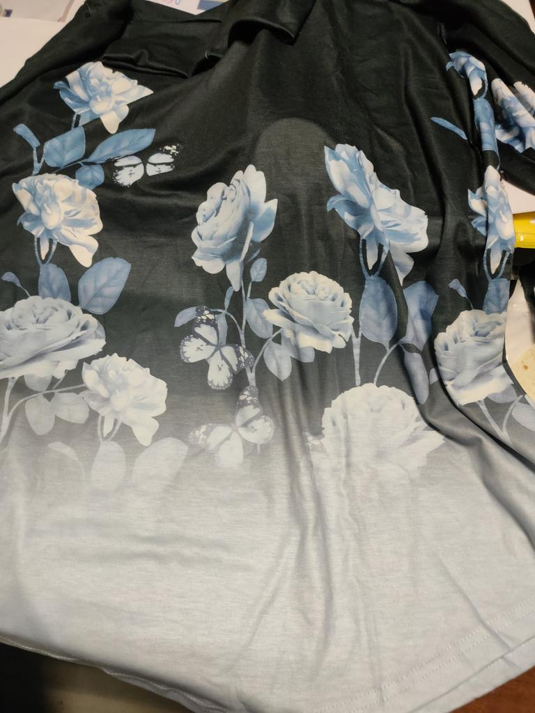 The size of the blouse is too big: the length of the sleeves and shoulders, I ordered black, but they sent dark green. If you ignore these comments, the blouse is beautiful. It's a pity that it's not what I chose..... I didn't see the flaw right away!!! Two holes, you can still hide them on the neck, but there's a hole in the center of the back....what to do???? I'm in shock 10.31 EUR!!!!!