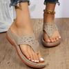 Women's Rhinestone Wedge Flip Flops - Comfy Outdoor Slide Sandals with Arch Support