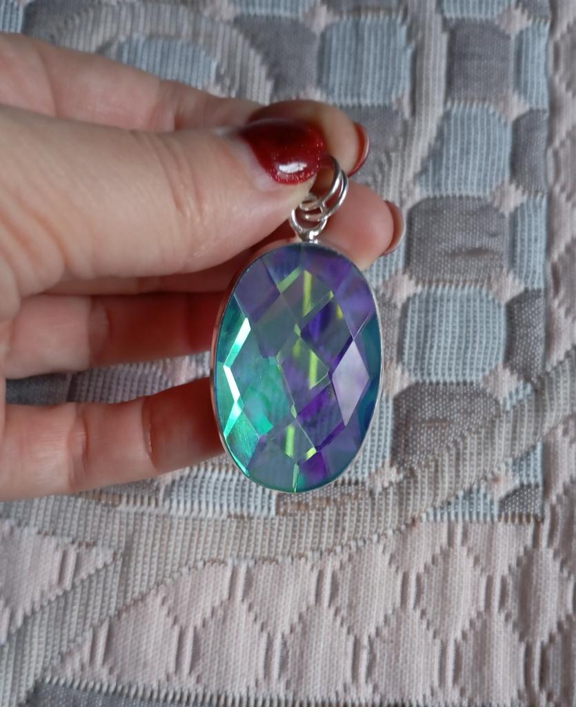Natural Blue Mystic Topaz Handmade 925 Sterling Silver Gift Pendant 2.17" U8W80