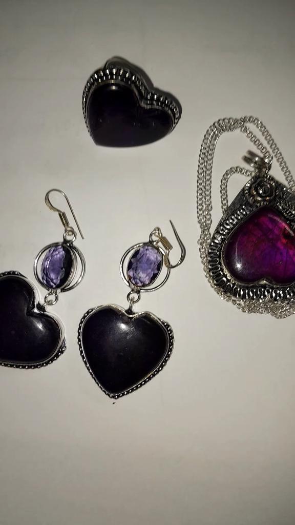 Relatively large earrings with purple labradorite. ๐Good workmanship, but quite heavy. ๐ The manufacturer should Come up with something!๐ค Because the thin dangles stretch the earlobe. ๐ It would be better to use wider posts! ๐ฃ I've now replaced them with small hoops.๐ Much more comfortable to wear! ๐ The delivery took place within 4 weeks.๐ Thank you ๐