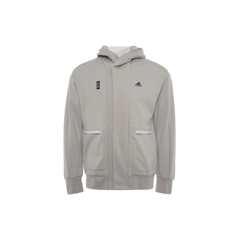 Adidas Logo Print Large Pocket Hooded Sports Jacket Men Outerwear Leather-Grey H39301