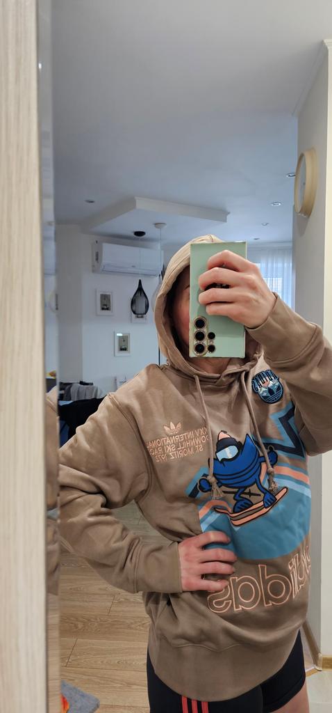Adidas Originals Holiday Hoodie With Cartoon Print Women Hoodies Pink Brown IT1742