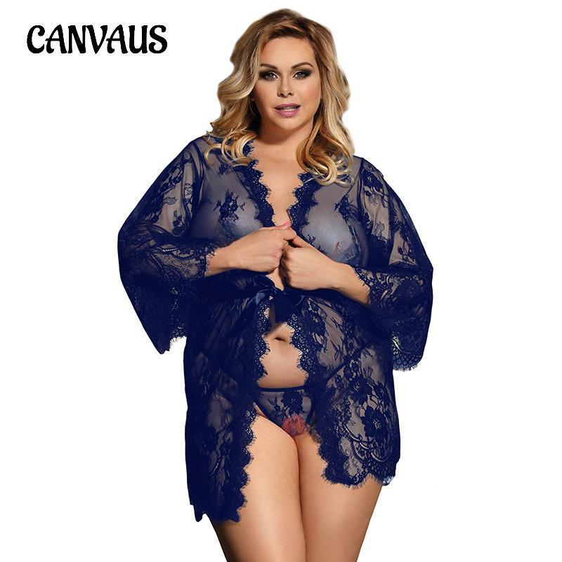 Women's Pajamas Plus Size Erotic Pajamas Belted Sexy Lace Pajamas See Through Cardigan Pajamas