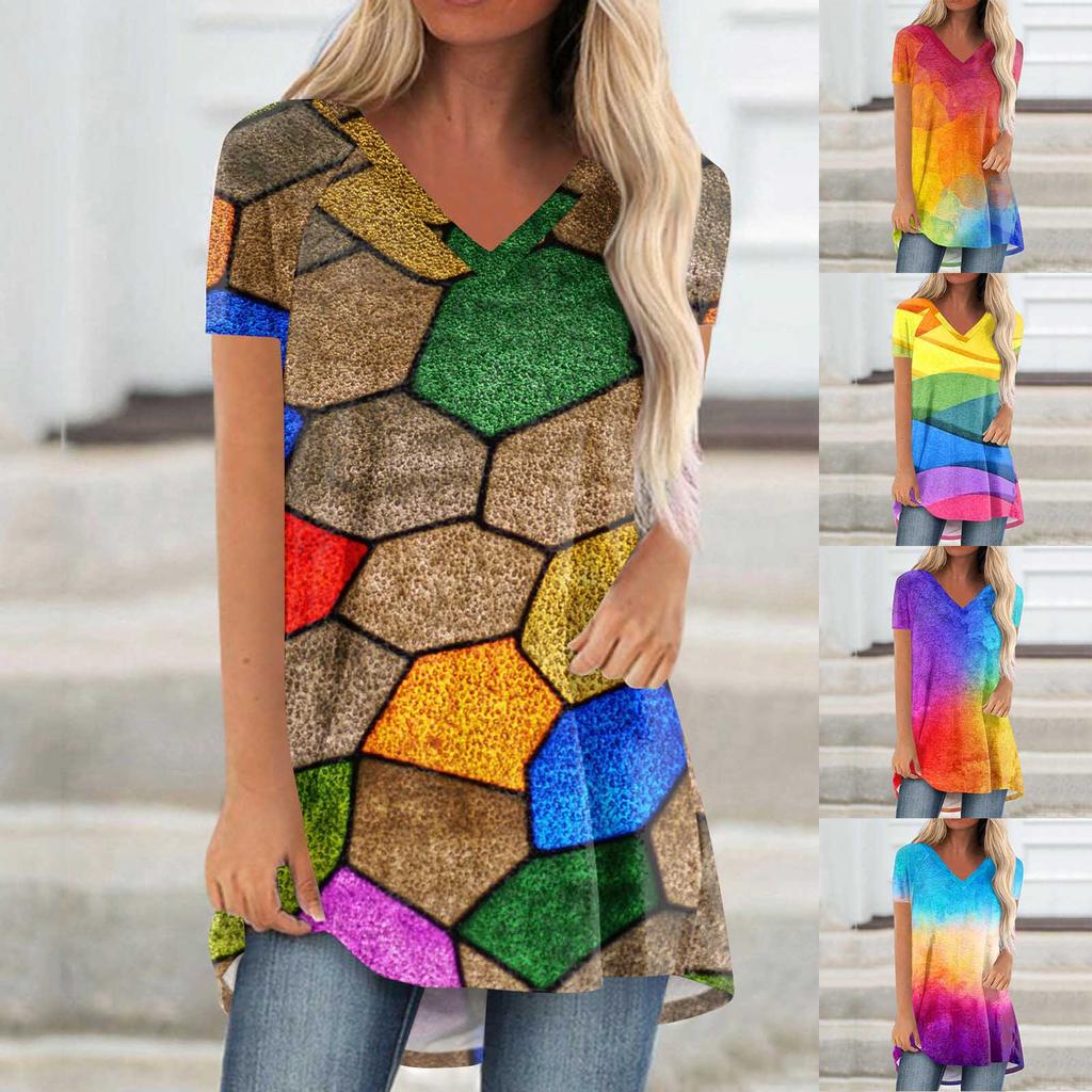 The material is lightweight and super soft, keeping you warm all day long while also keeping you cool. The fabric is comfortable and elastic; Occasion: Daily Wear, Vacation, Dating, Sports, School, Work, Street Wear, etc. Clothing Care: Hand/Machine Wash Low Temperature, Do Not Bleach, Avoid Exposure, Hang To Dry. Features: The casual style shows your unique charm and vitality, adding elegance and fashion sense. Fashion Women's Casual Loose Round Neck Short Sleeves Printed T-Shirt Top Soft and Comfortable, You'll Love It When You Receive It Please note sizing details vary by color. Please check product description for more sizing information. Product information: