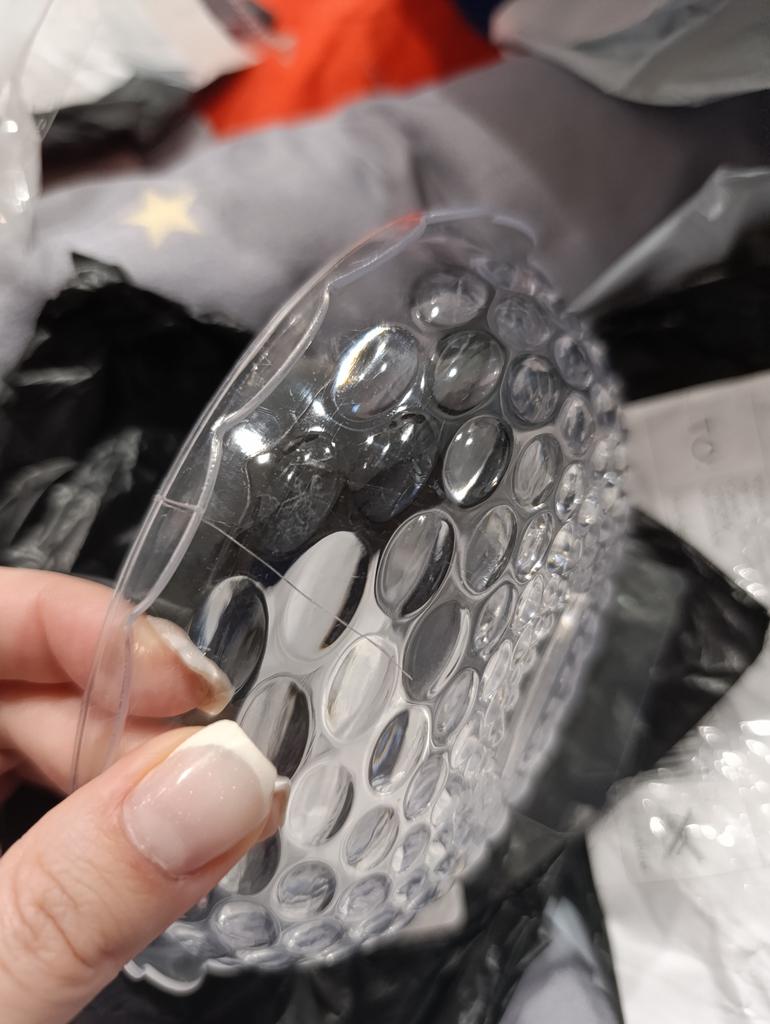 The plastic is of high quality, the package is well packed, not damaged. There is a sticker.