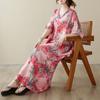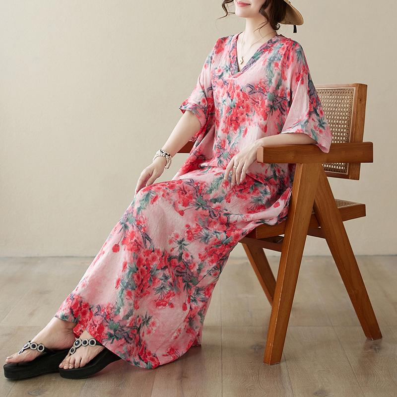 DIMANAF 2024 Plus Size Dress Women Summer V-Neck Sundress Bohemian Floral Print Loose Big Oversize Maxi Dress 9044