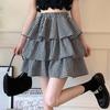 Black and White Check Cake Skirt Women's Elastic Waist A-word Ruffle Edge Pleats Puffy Skirt Sexy Sweet Gothic Preppy Style Spring Summer