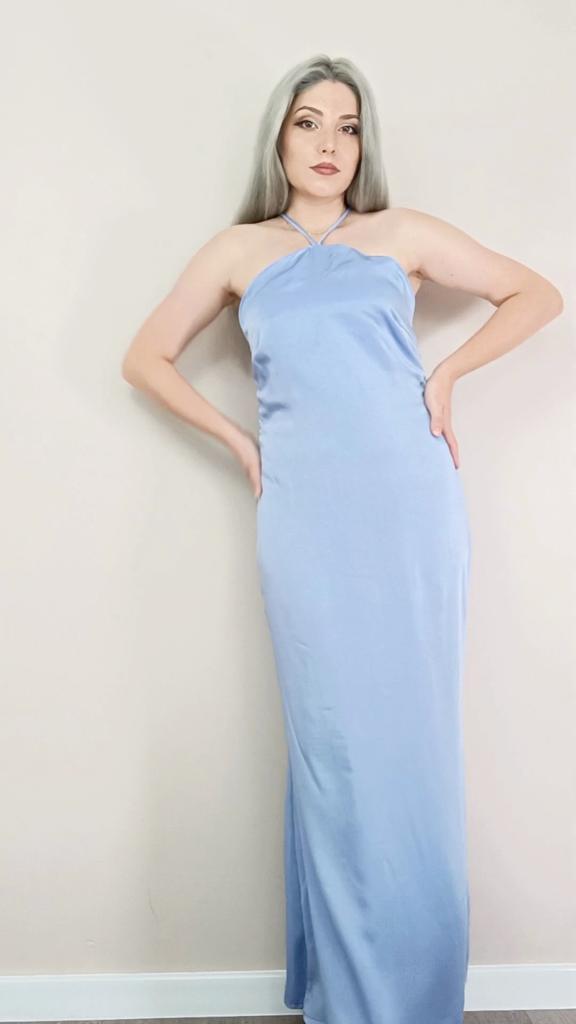 This pink long dress exudes a gentle, feminine charm with its delicate color and elegant design! 1) Halter Neck Tie: Featuring a stylish halter neck tie that adds a touch of sophistication. 2) Backless Elegance: The open back design adds a hint of allure, making it perfect for special occasions. 3) Silky Feel: it drapes beautifully and feels smooth and luxurious against the skin.