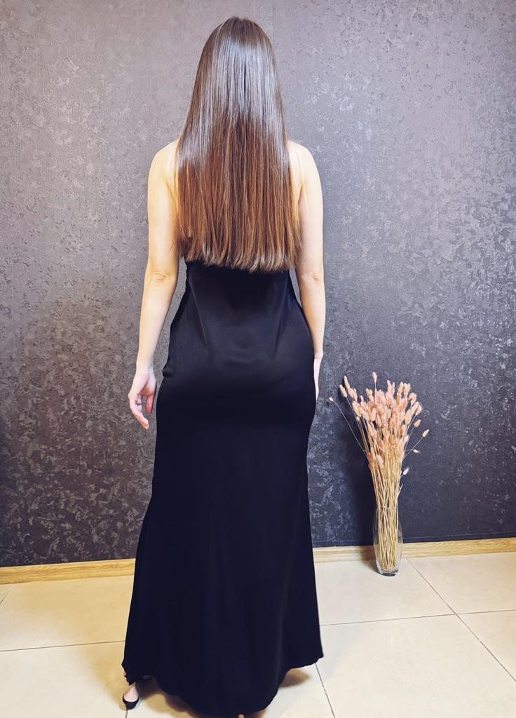 Women Design Sense Backless Spaghetti Strap Solid Ankel-Length Dress V-neck High Waist