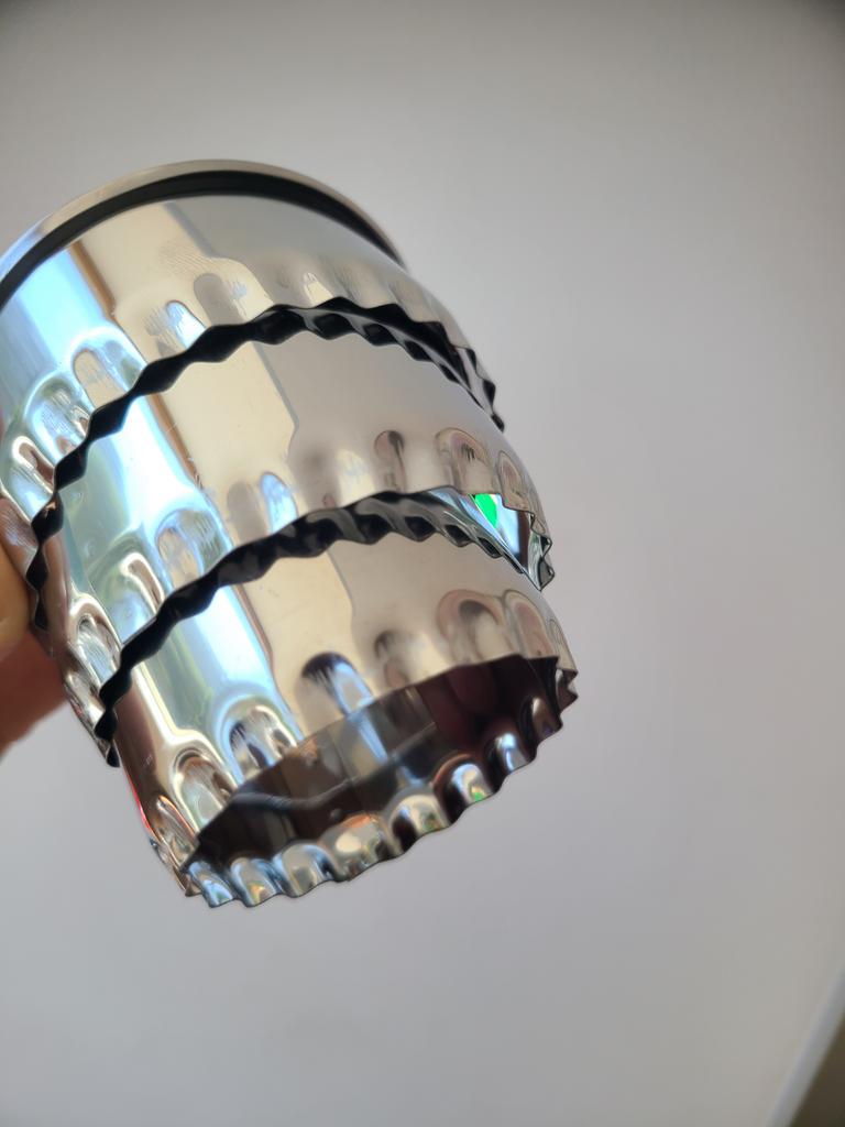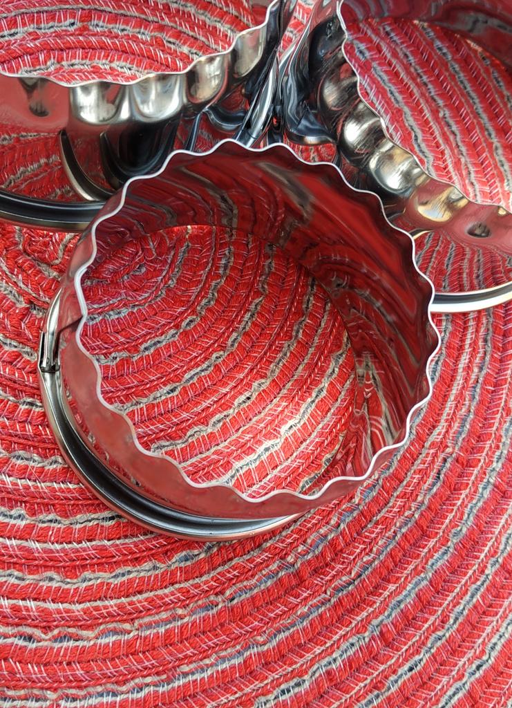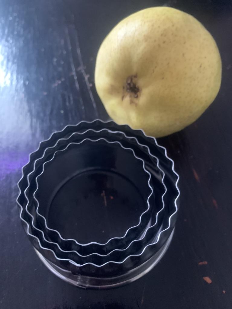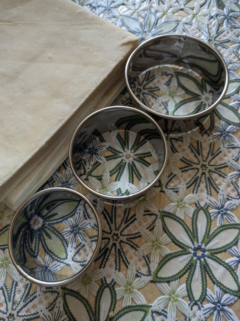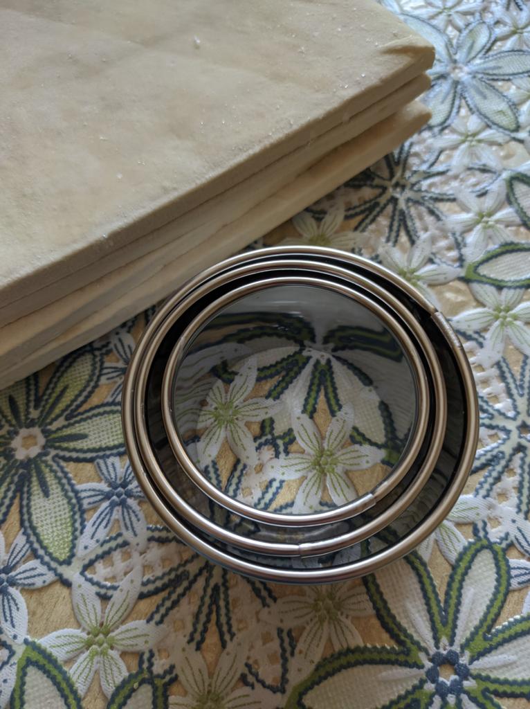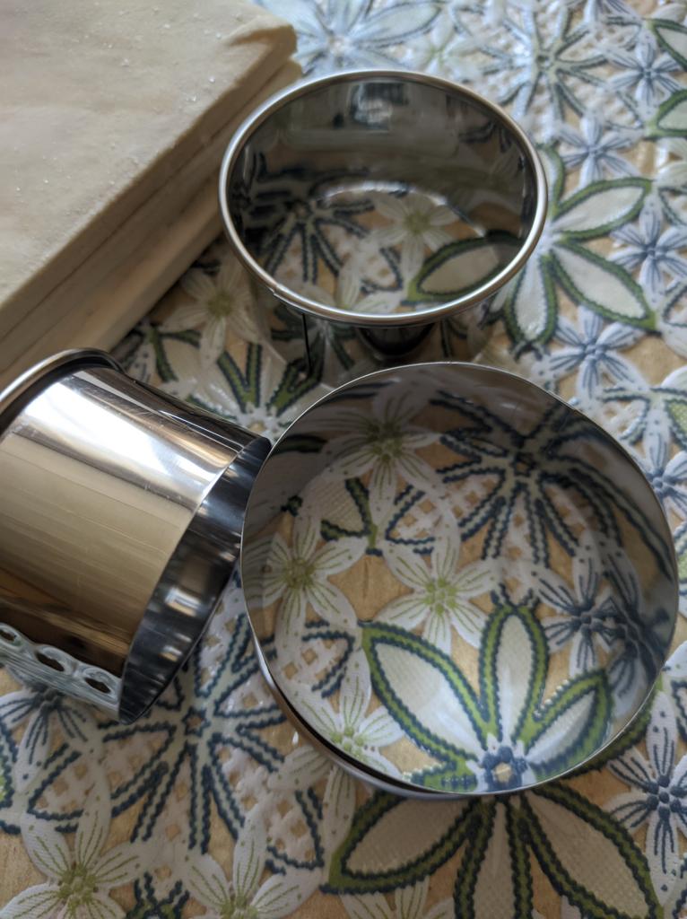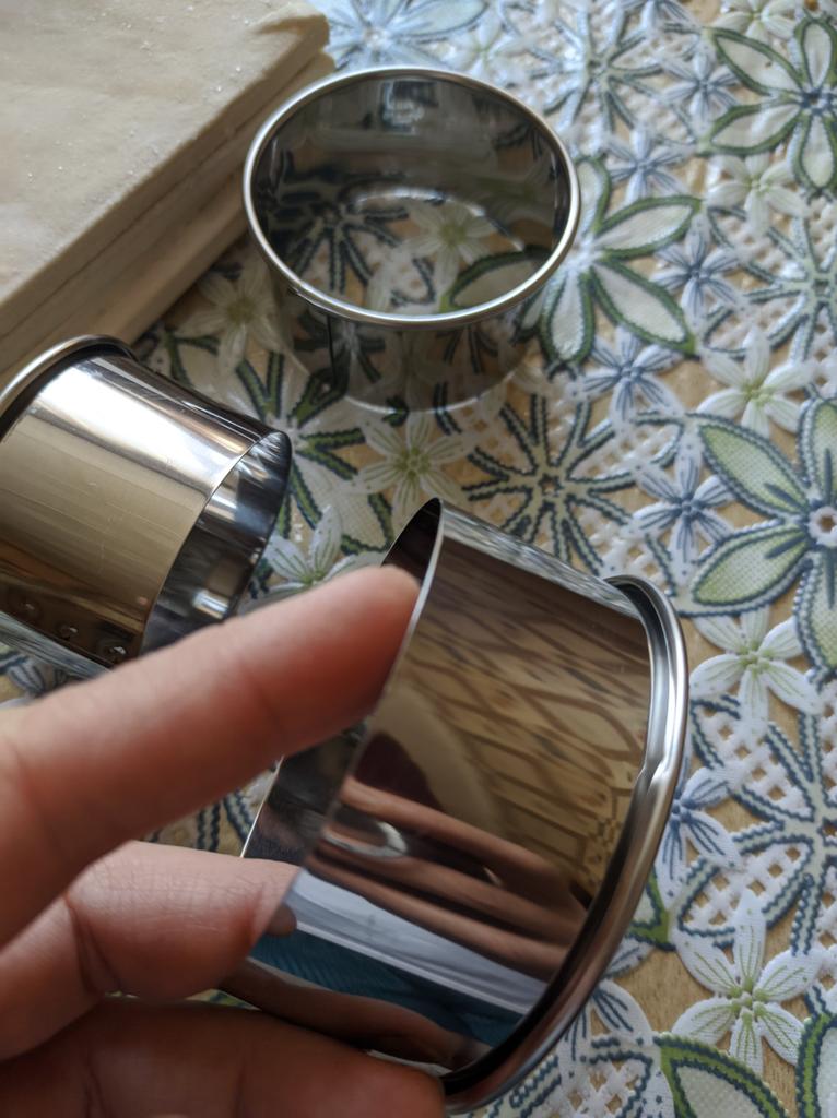 Dough cutters. Metal, stainless steel. Strong and reliable. There are two options to choose from. With a curly edge and simply round, like mine. Set includes 3 shiuks, different diameters. Suitable for making dumplings and cookies. You can make vol-au-vents (baskets) from puff pastry. Comfortable, I like it. I recommend.
