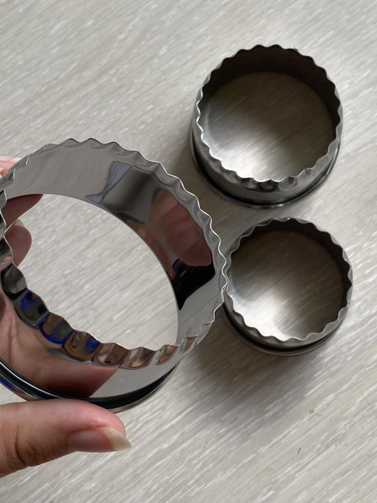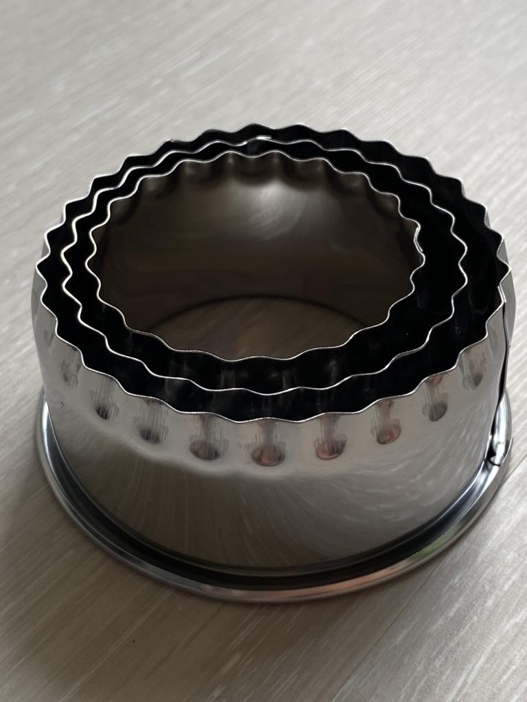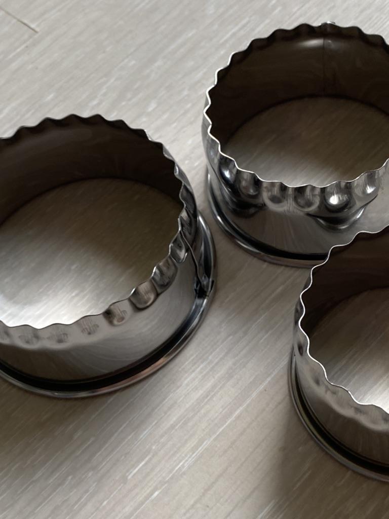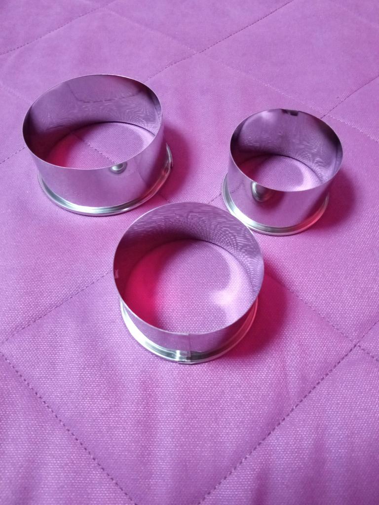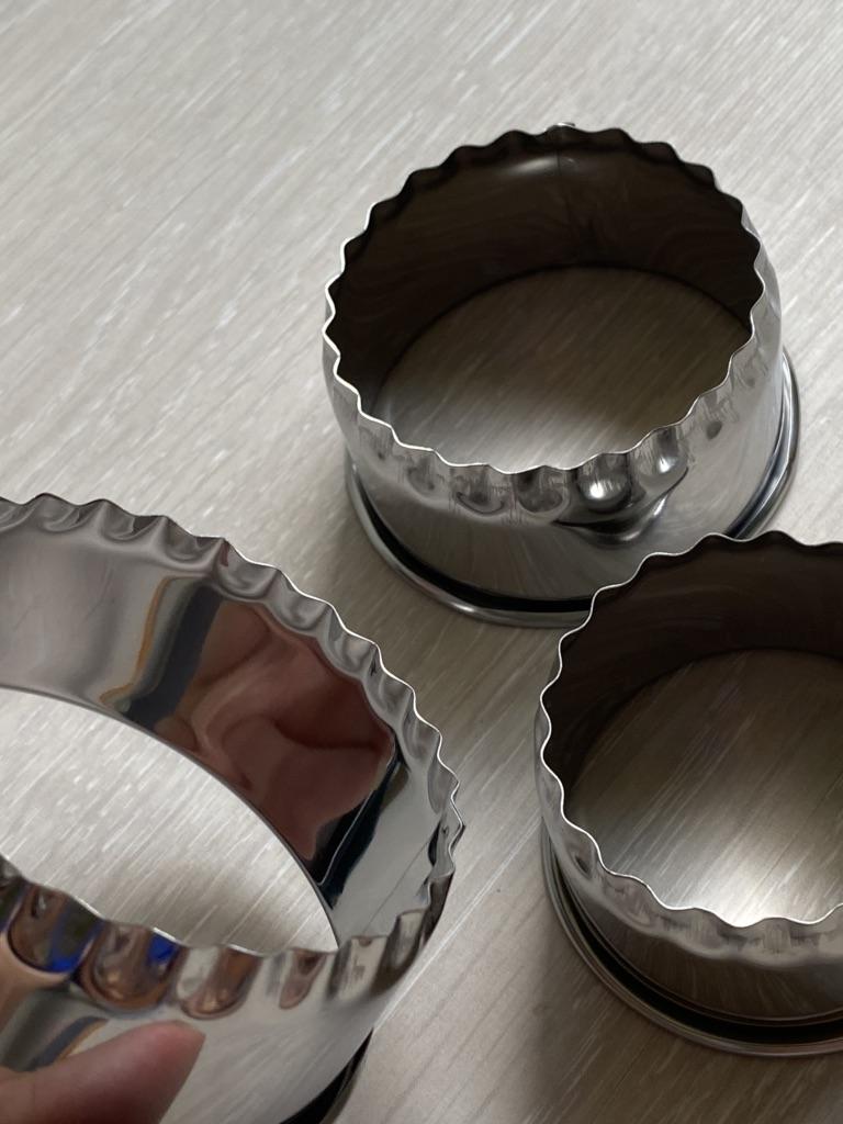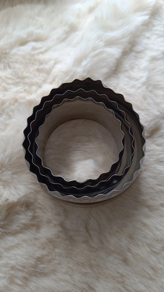 A set of forms for working with dough🍪 Set includes 3 pieces of different diameters. Durable stainless steel. Sharp edges. Without any effort, you get even circles the first time. (For cheesecakes👍👍) Can also be used for portioned salad. Available with smooth or grooved edges. Great product👍👍