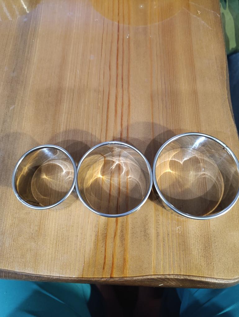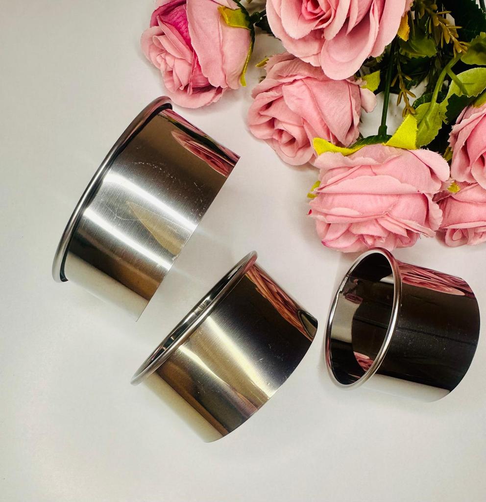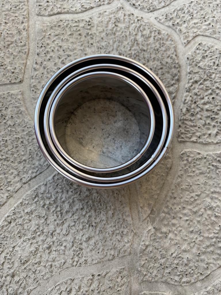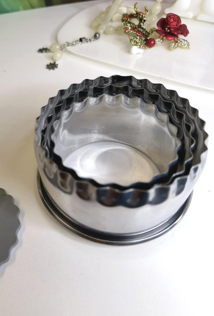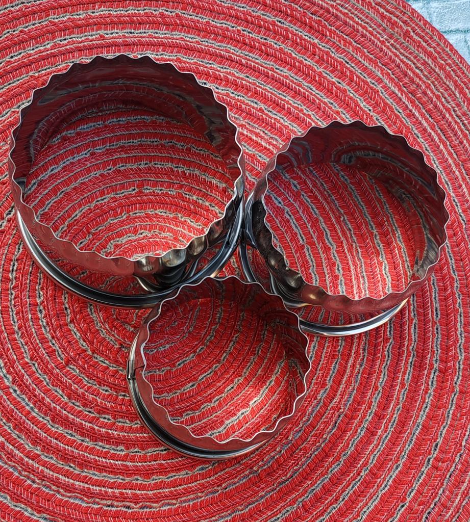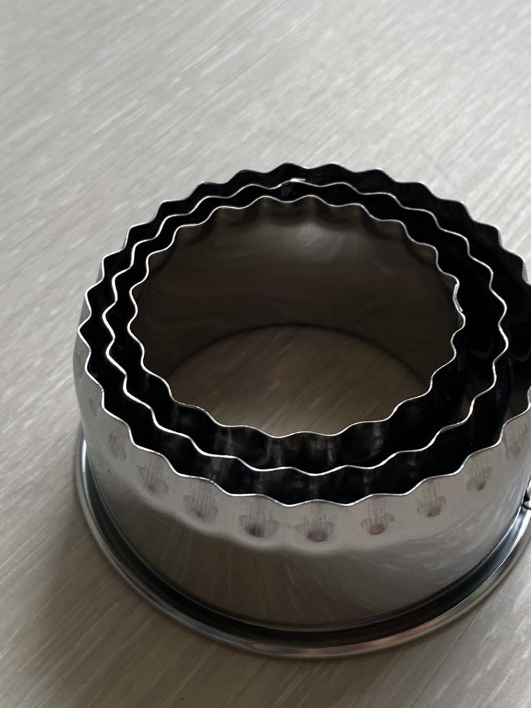 A set of forms for working with dough🍪 Set includes 3 pieces of different diameters. Durable stainless steel. Sharp edges. Without any effort, you get even circles the first time. (For cheesecakes👍👍) Can also be used for portioned salad. Available with smooth or grooved edges. Great product👍👍