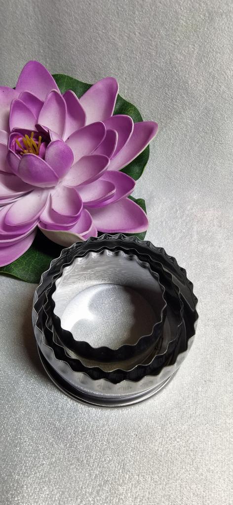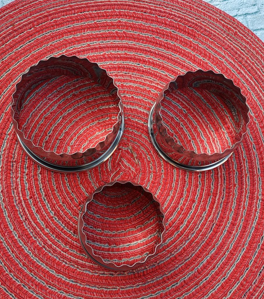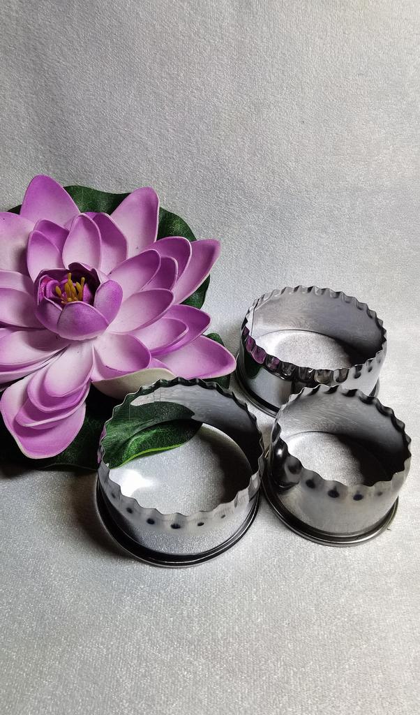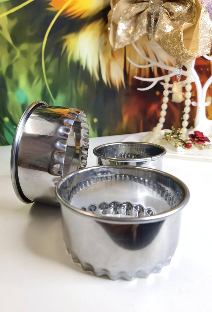 Dough pans with wavy edge 3 pieces in a set Diameter 7.5 cm, 6.5 cm and 5.5 cm 📏 The molds are moderately sharp, the steel is strong, does not bend, there is a protective edge for the fingers. Suitable for making cookies, gingerbread, you can experiment with dumplings and dumplings) in any case, the molds are cool