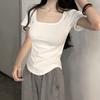 Women Short Sleeve Square Neck T-Shirt Spring and Autumn New Irregular Hem Slim Casual Top Girl Bottom Shirts