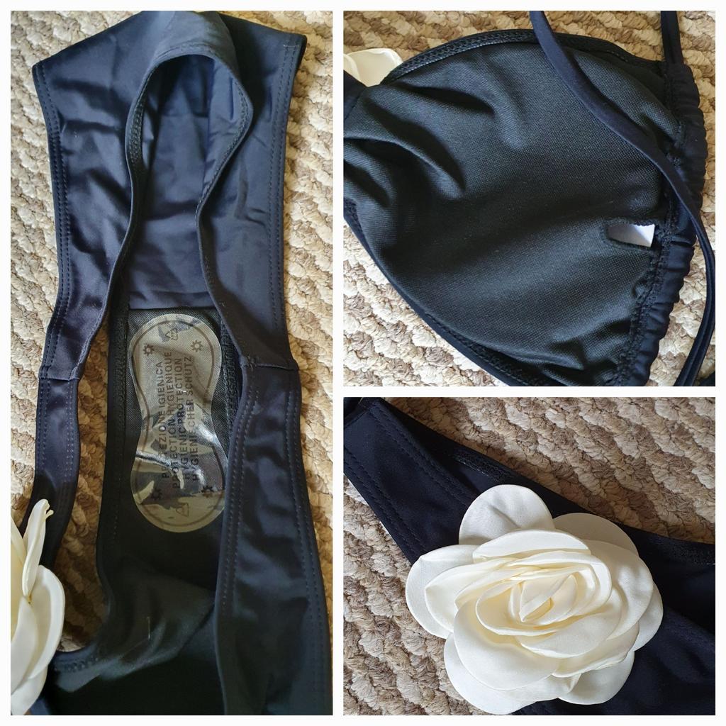 The three-dimensional flower splicing design adds a touch of fashion to the bikini top, featuring sexy contrasting color stitching and removable push-up padded cups for a closer fit. The strap bikini bottoms offer just the right amount of coverage with a playful thong design, keeping you comfortable and looking sexy.