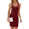 Summer Round Neck Sleeveless Solid Button Hip Dresses