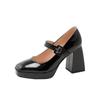 Krazing Pot PU Square Toe Super High Heels Summer Buckle Straps Shoes Big Size 43 Women Waterproof Pumps