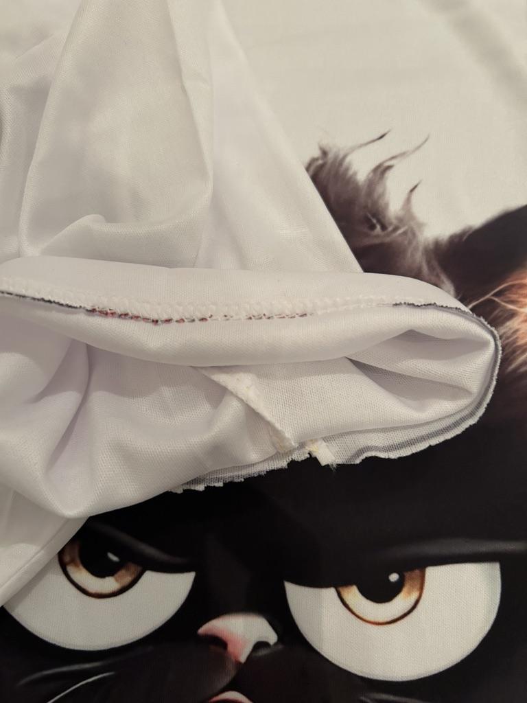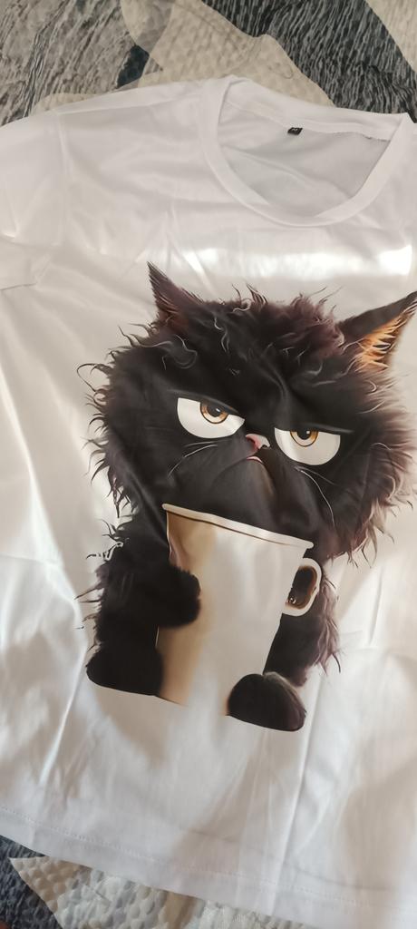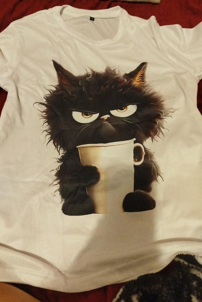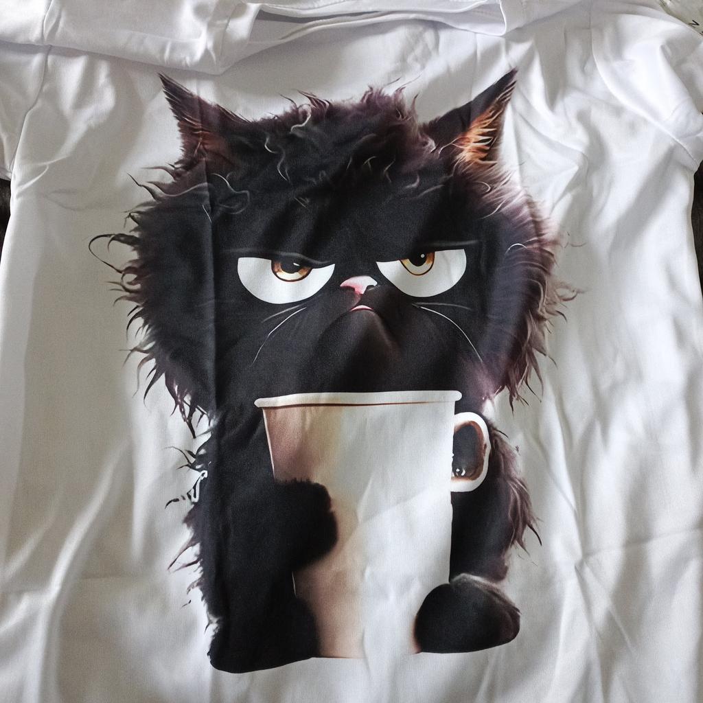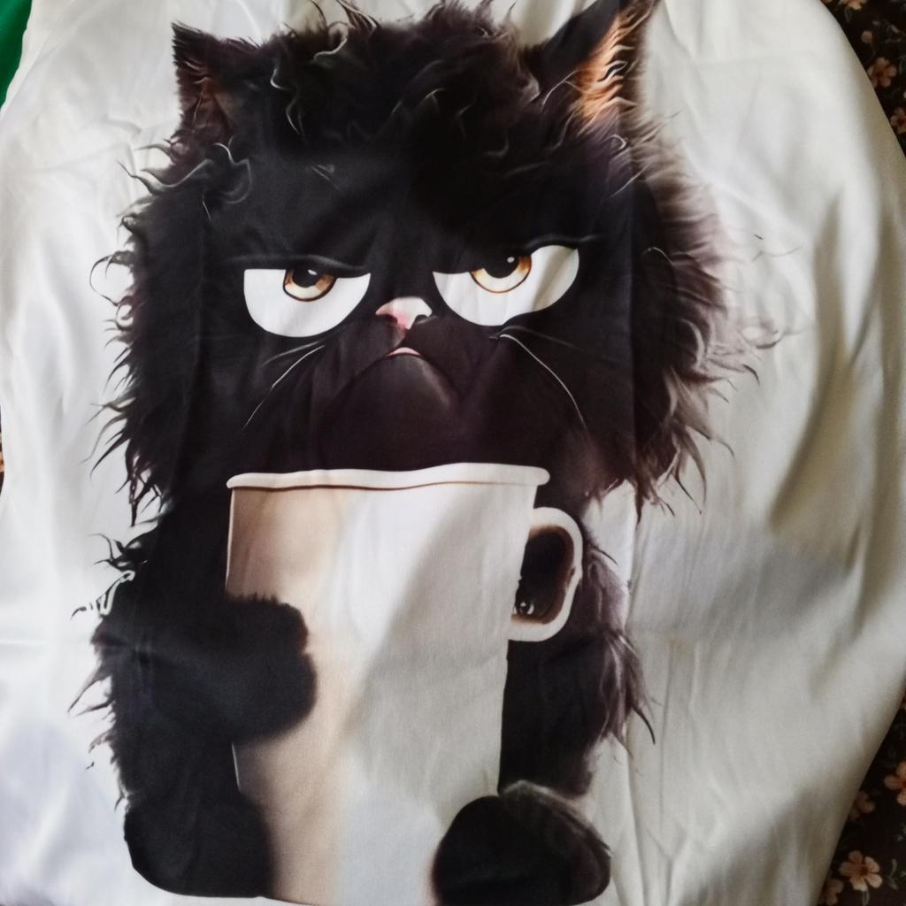 Very pleasant kitty, but wash gently, in hot water or washing machine the pattern may peel off. I recommend for purchase