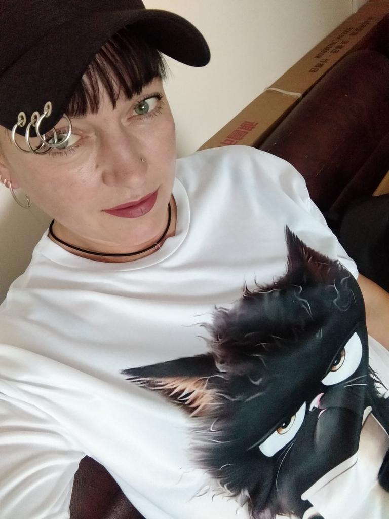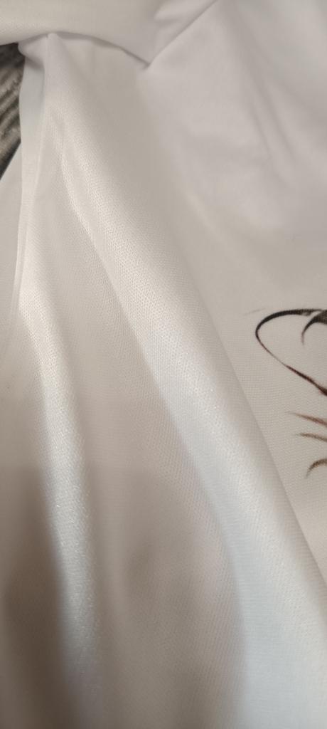 Cool T-shirt, the pattern is bright. The material does not seem to be natural, but it is very pleasant to the touch. I chose the size according to the volume of my chest, the T-shirt fit perfectly!❤️