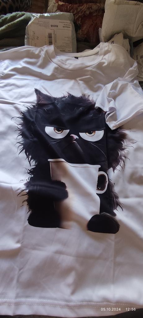 The T-shirt fit my 52 perfectly, the cat is extraordinary, the price is excellent. Thank you.