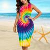 Women's Dress Sling Summer Blue Curved Flowers Print Dresses Tight Sleeveless Slim Fit Sexy Fashion Top Clothing